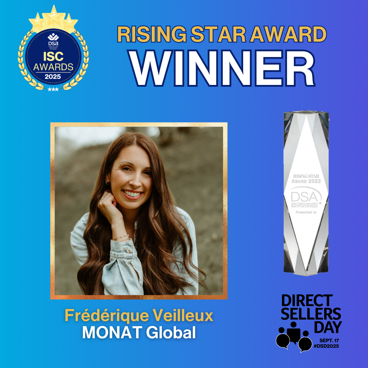 The Rising Star award recognizes an emerging independent sales consultant (ISC) who, within their first five years of involvement, exhibits tremendous potential. They have recorded demonstrable growth in the direct selling industry, and have positively impacted their team and company.
